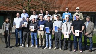 Acht Monate Unterricht in Vollzeit liegen hinter ihnen. Das ist der Zeitraum, den Meisterschülerinnen und Meisterschüler einplanen sollten, wenn sie über die Aufstiegsqualifikation im Maler- und Lackiererhandwerk nachdenken. In den vergangenen Monaten haben 19 Teilnehmende am Handwerkskammer Bildungszentrum Münster (HBZ) intensiv auf die Abschlussprüfungen der Fachteile 1 und 2 hingearbeitet. Diese bilden die gewerkspezifische Grundlage der Meisterausbildung in Deutschland. Zusätzlich gehören der betriebswirtschaftlich-rechtliche Teil 3 sowie der Ausbilderschein (Teil 4) zum Weg zum Meistertitel.