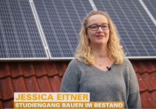 In unserem neuen Video teilt Bachelor-Absolventin Jessica Eitner ihre Erfahrungen zum Studiengang „Bauen im Bestand“. Sie erläutert, warum das Kooperationsstudium für Sie die richtige Entscheidung war und berichtet von den Besonderheiten. Eitner verdeutlicht den Zusammenhang der Studieninhalte zu ihren aktuellen beruflichen Aufgaben als Energieberaterin. Auch mögliche Karrierechancen und für wen das Studium besonders geeignet ist, verrät Sie im Video.